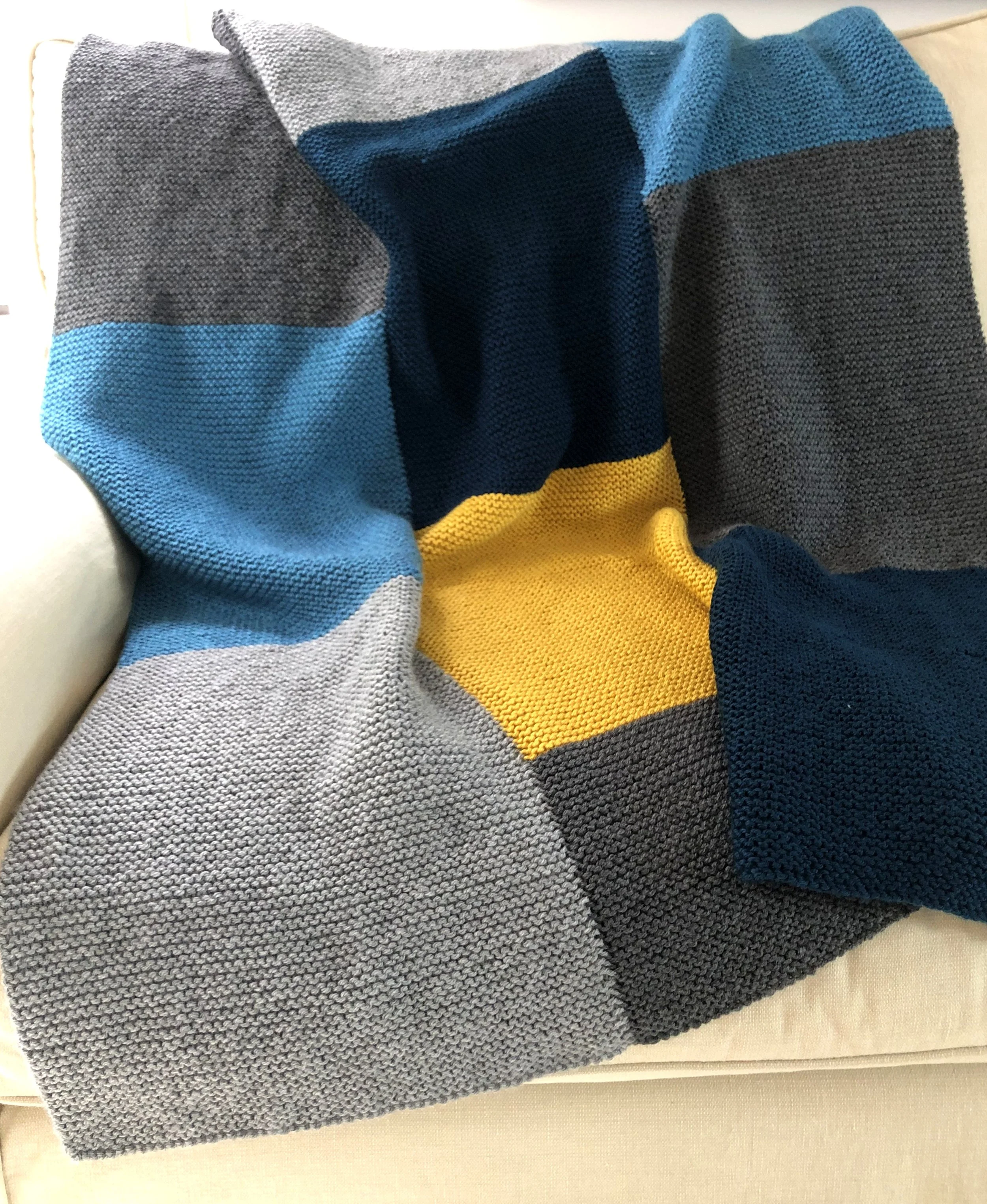 On the Map blanket knit with Valley Yarns Valley Superwash in the ‘Colonial Blue’ colorway. Click here for more details on this blanket knitting pattern.